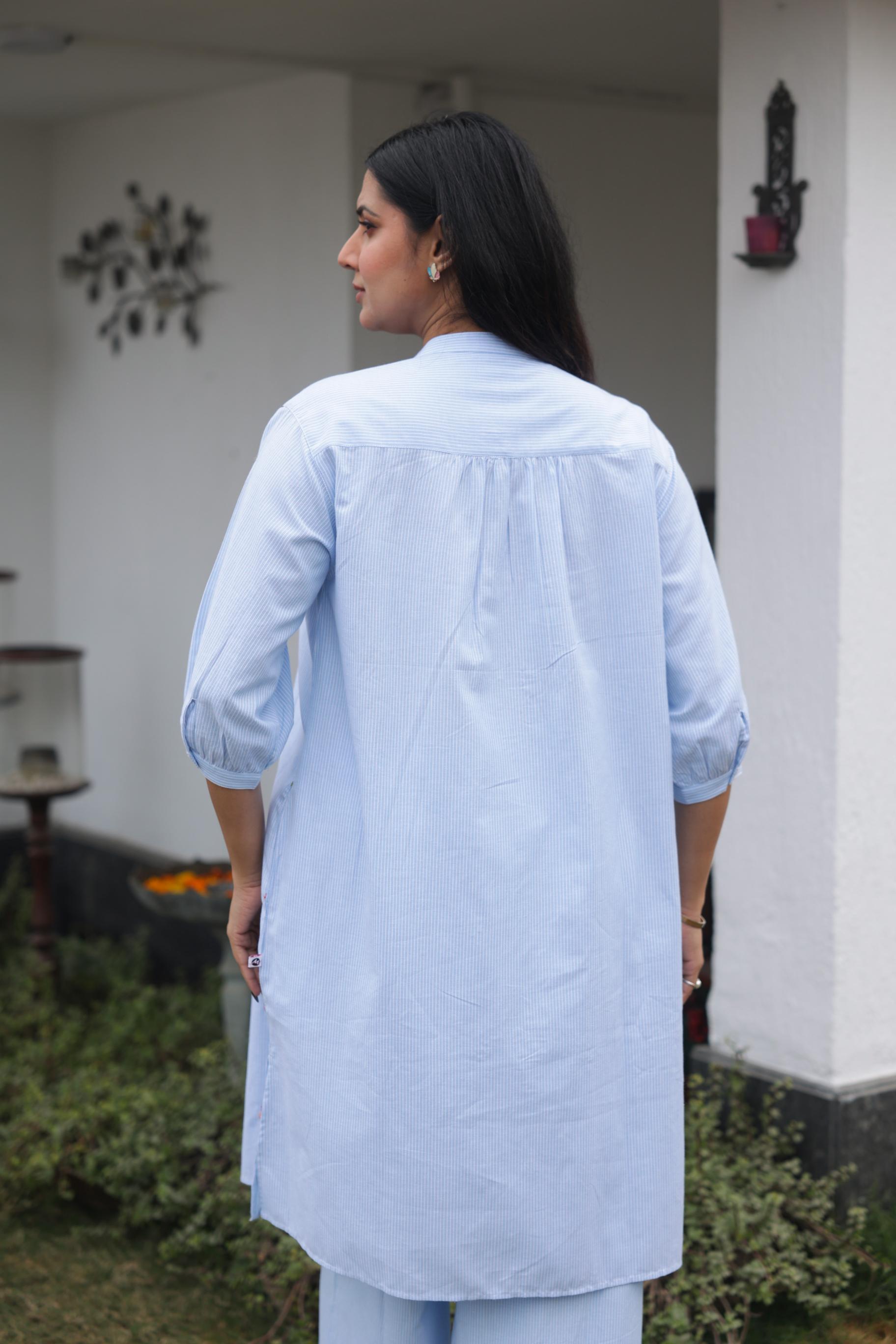 Blue Stripe Floral Co-ord Set – Soft, Elegant & Timeless